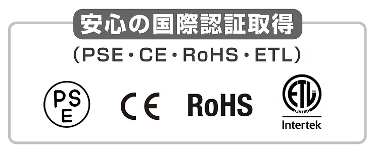 日本の電気用品安全法に基づき、安全性を確認済み