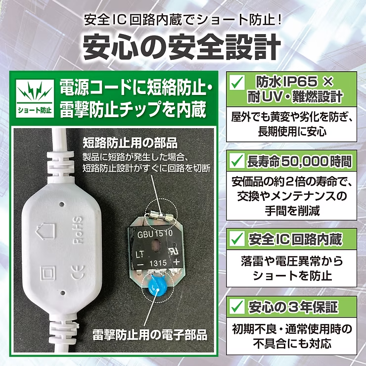 落雷やトラブルから守る「ショート防止IC」