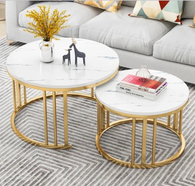 サイズの異なる2つの円形テーブルがセットになった